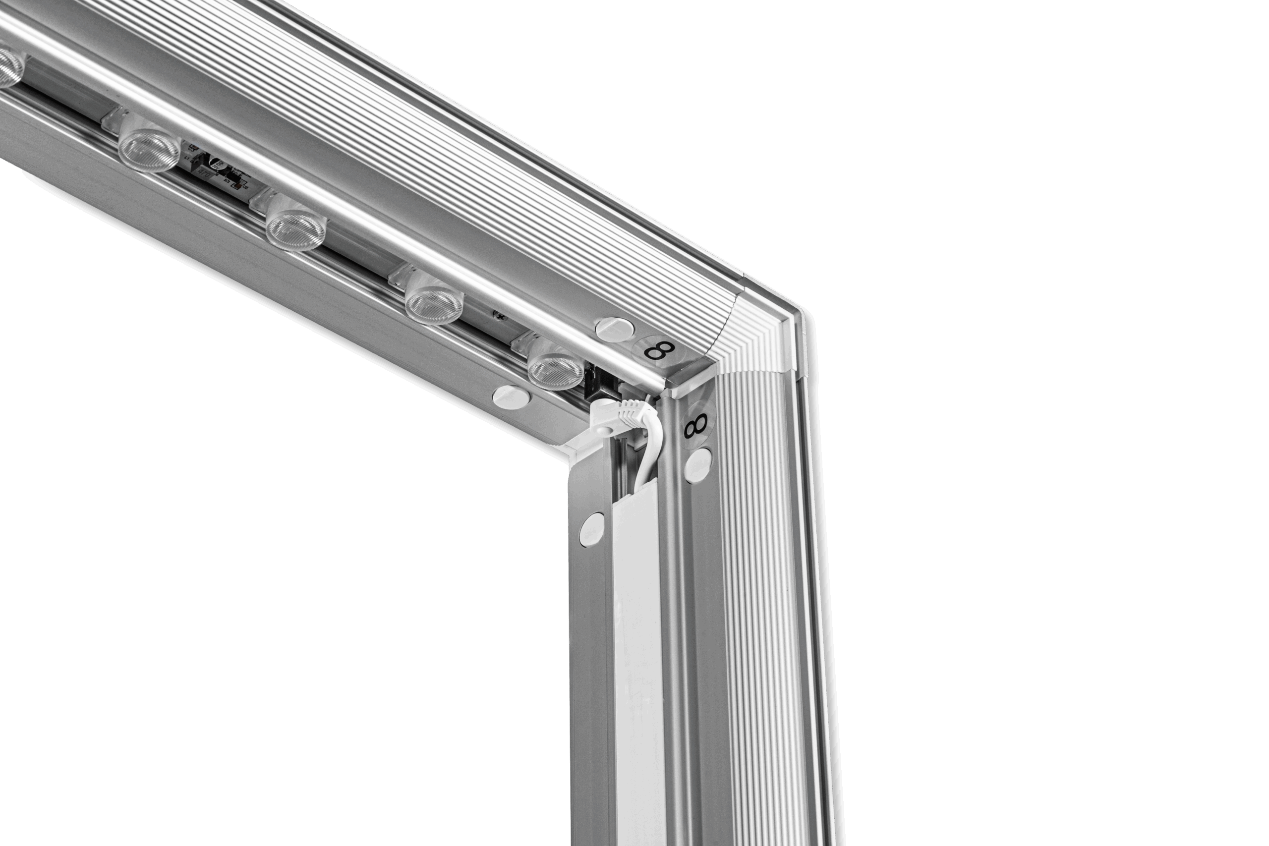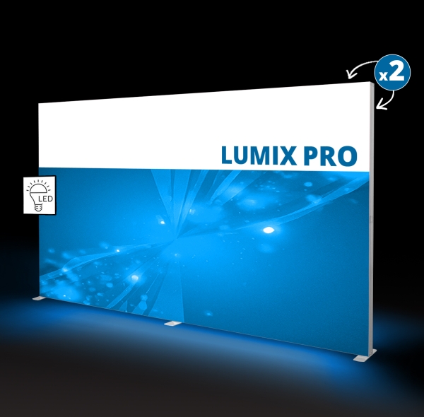 Het Lumix Go LED systeem is een dubbelzijdig verlichte beurswand met een robuust aluminium frame en verwisselbare textielprints met siliconen pees. Binnen de categorie verlichte beurswanden onderscheidt Lumix Go zich door snelle montage, mobiliteit en een strak eindresultaat.