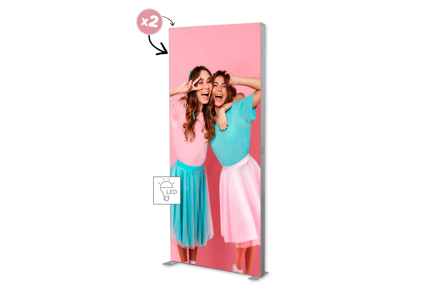 Het is een dubbelzijdig verlichte beurswand met een robuust aluminium frame en verwisselbare textielprints met siliconen pees. Binnen de categorie verlichte beurswanden onderscheidt deze zich door snelle montage, mobiliteit en een strak eindresultaat.